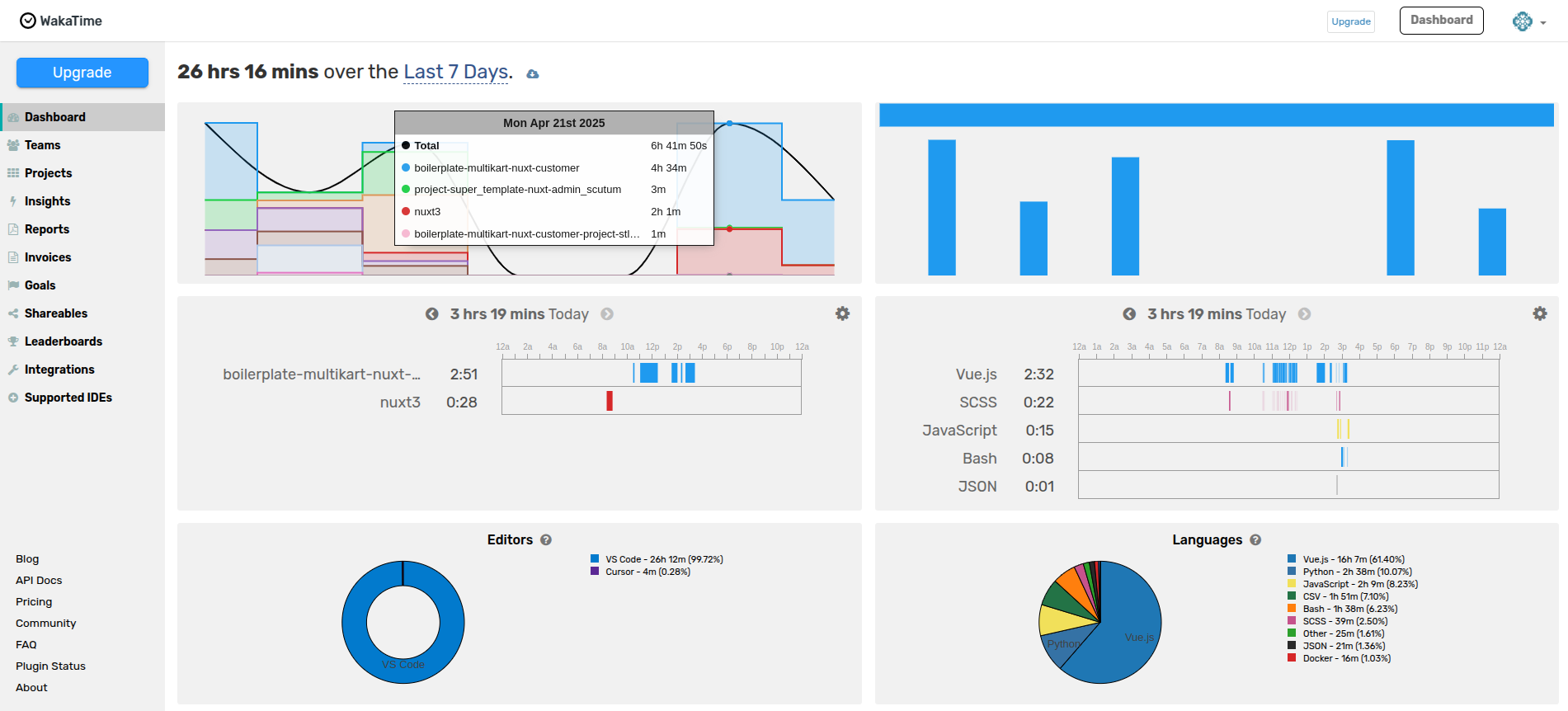 这个插件可以记录你的代码时间,看看你最花时间在哪些项目上✌️