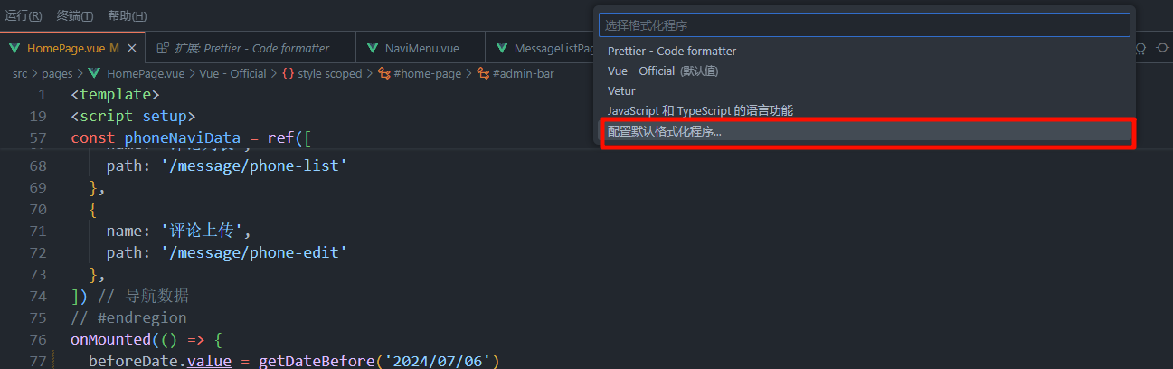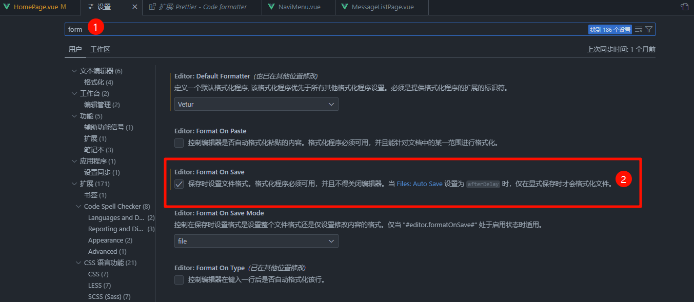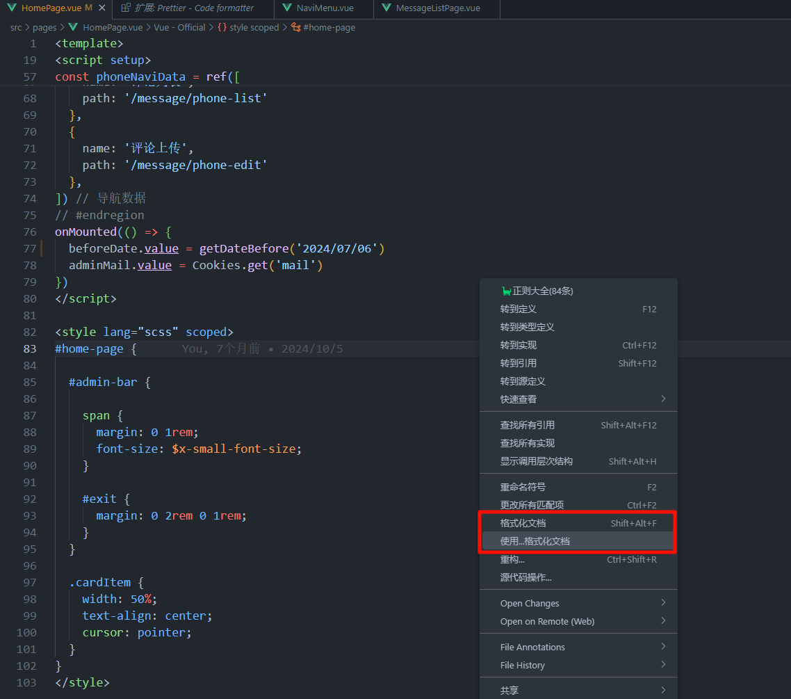 但可以看到我使用的是Vetur哈哈哈哈哈🤣因为我懒的配置,所以直接用Vetur了感觉也很方便(记得开启Format On Save