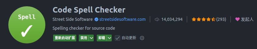 的报错找半天问题的烦恼再也不存在了,这个插件会帮你检查一些英文的拼写,虽然有些小众的词汇他不认识😅,但也解决了大部分的问题